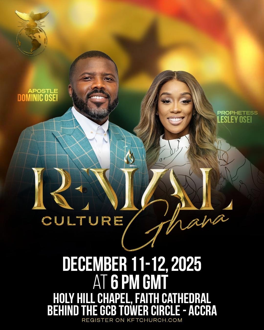 Their arrival signals the countdown to Revival Culture Ghana 2025, happening December 11–12, 2025 at Holy Hill Chapel, Faith Cathedral in Accra. This year’s edition is expected to carry an intense atmosphere of worship, deliverance, and divine impartation as believers gather from across the country for a fresh encounter with God.