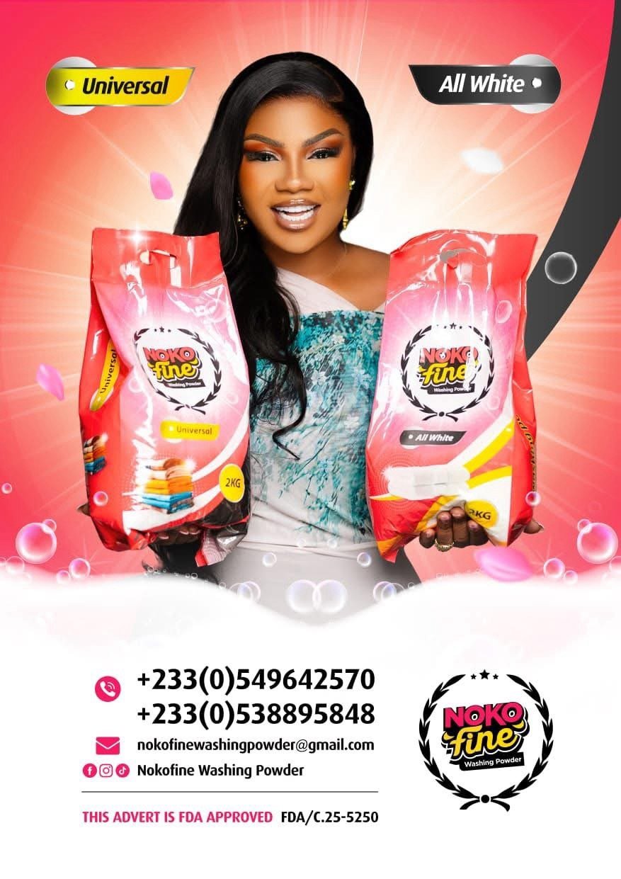 Ghanaian gospel star Empress Gifty has stepped into a new chapter as she officially unveils NokoFine Washing Powder, her latest business venture. The award-winning musician is expanding her influence beyond music, introducing a high-quality detergent available in Universal and All White variants.
